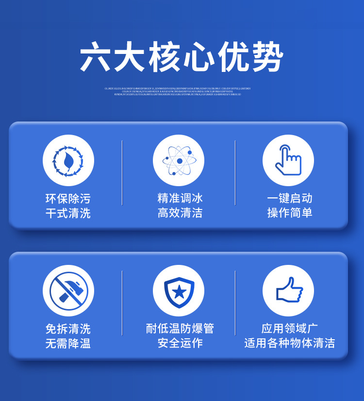 干冰清洗的優(yōu)勢在于其高效的清洗速度,與傳統(tǒng)清洗方法相比較,干冰清洗的速度遠遠高于傳統(tǒng)清洗方法。
