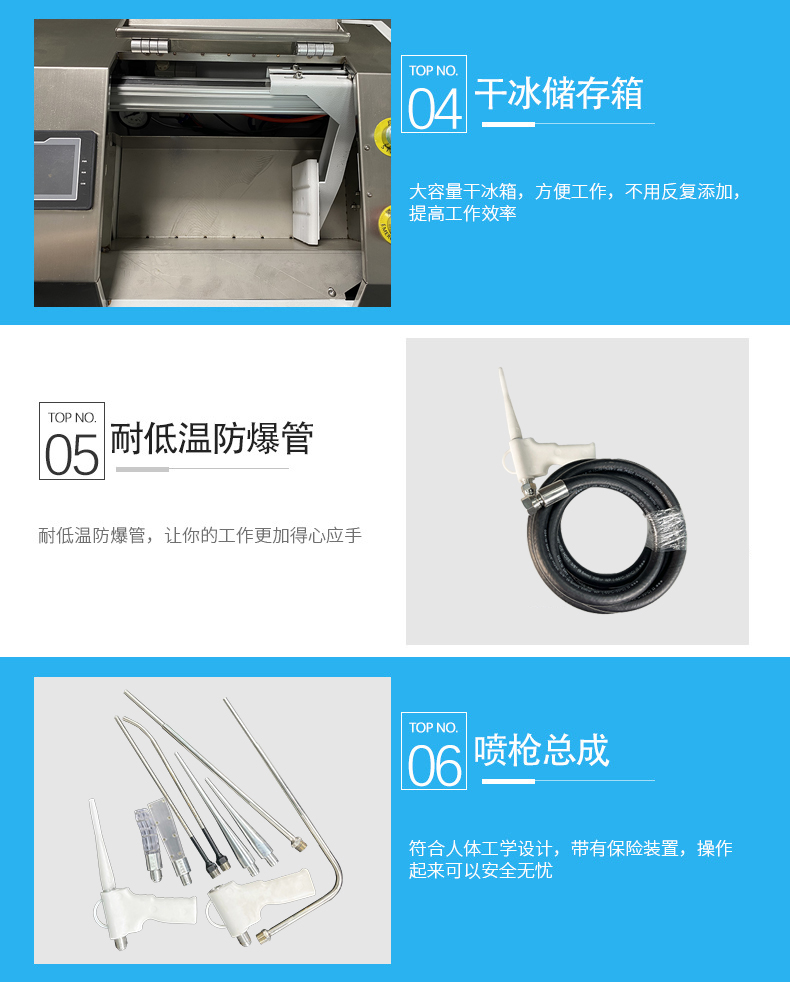 環(huán)保節(jié)能:干冰在噴射過程中直接轉(zhuǎn)變?yōu)闅怏w,不會產(chǎn)生任何污染物或化學廢液,對環(huán)境友好。同時,干冰可以循環(huán)利用,節(jié)約資源和能源消耗。