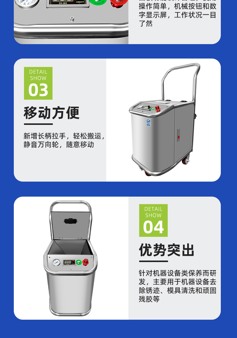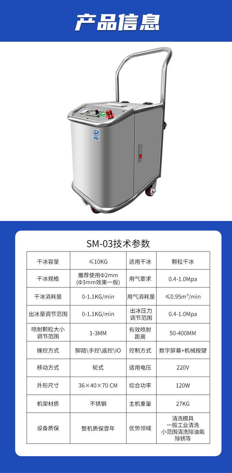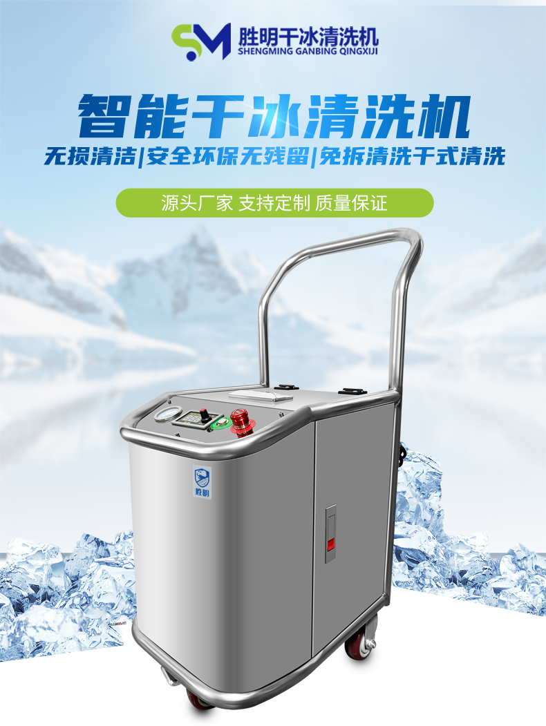 干冰清洗主要的設備是一臺干冰清洗機和一臺空壓機,就可以對產品或者設備進行清洗作業(yè),操作也相對而言比較簡便