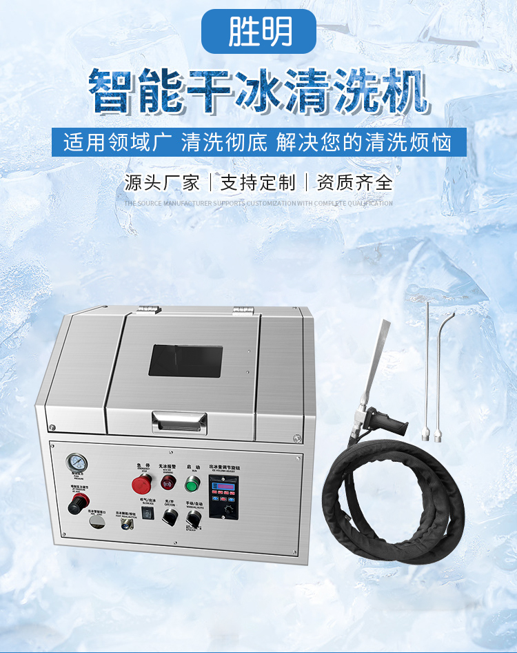 ( 3 )“微爆炸”。干冰粒鉆進(jìn)污垢裂縫后,在幾千分之一秒內(nèi)氣化,其體積瞬間膨脹600~800倍,將污垢剝離物件表面。